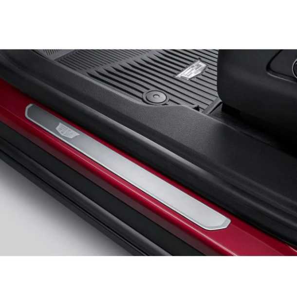 FRONT STAINLESS CADILLAC CREST DOOR SILL PLATES