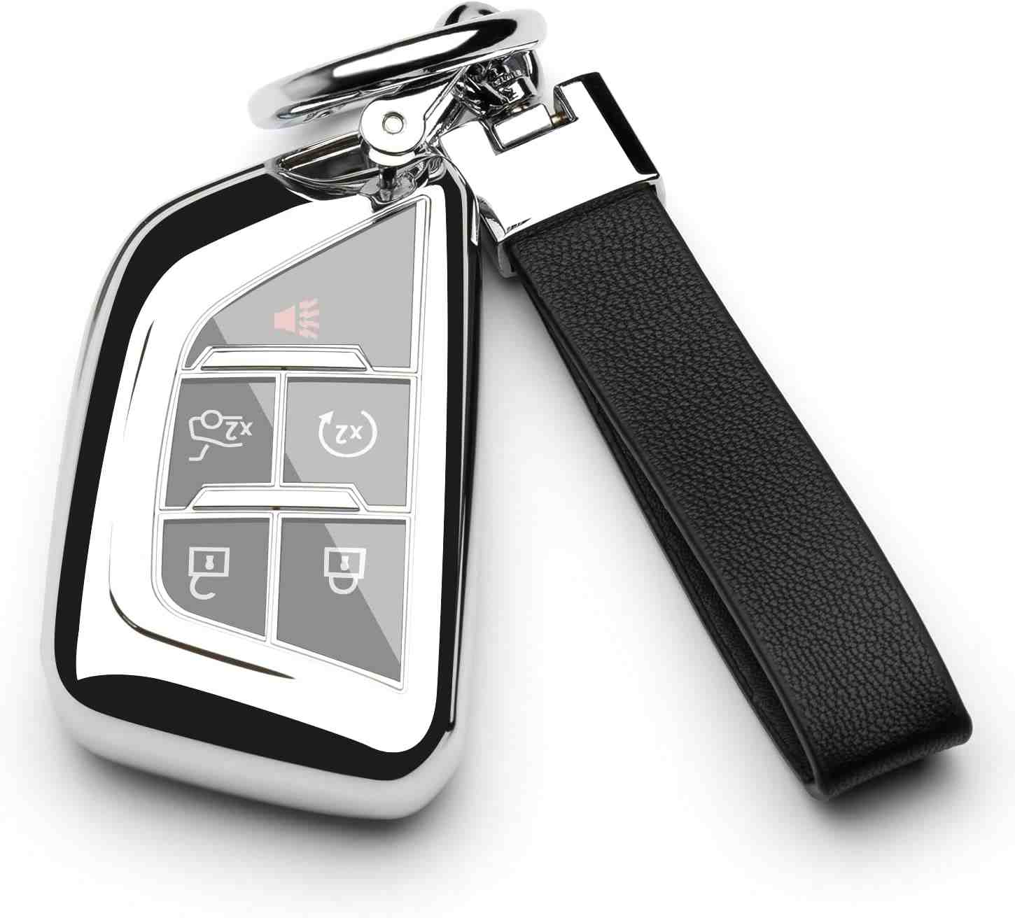 Cadillac Key Fob Cover Silver TPU Car Key Chain Leather Lanyard Holder case Protector Escalade ESV CT4 CT5 Accessories